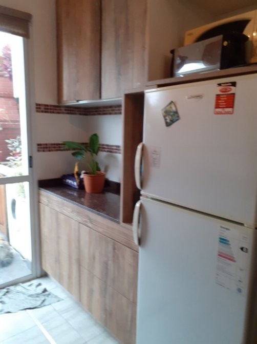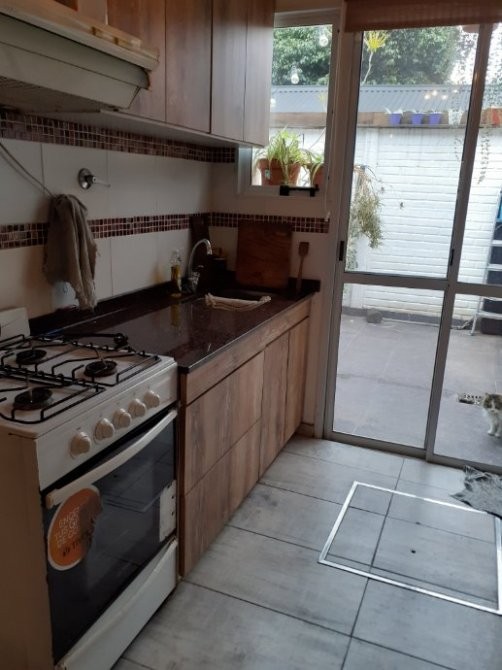 cochera simple al frente, living comedor, cocina instalada, dos dormitorios, uno grande y otro chico, patio estado general bueno